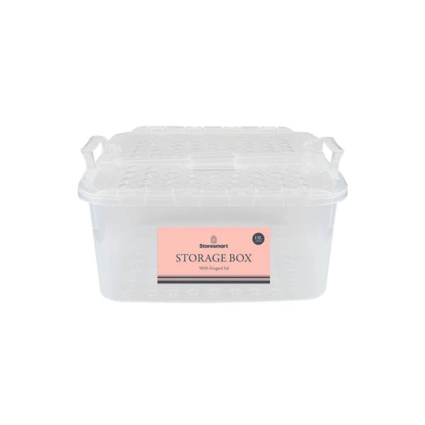 Maximise your storage space with the Storesmart Storage Box with Hinged Lid. This 13L box offers a generous capacity for organising everything from clothing and toys to office supplies and seasonal decorations. The hinged lid ensures easy access while keeping contents secure and dust-free. Perfect for use at home or in the office, this storage box is both practical and durable.